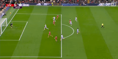 半场结束,利物浦暂时1-0领先布莱顿。